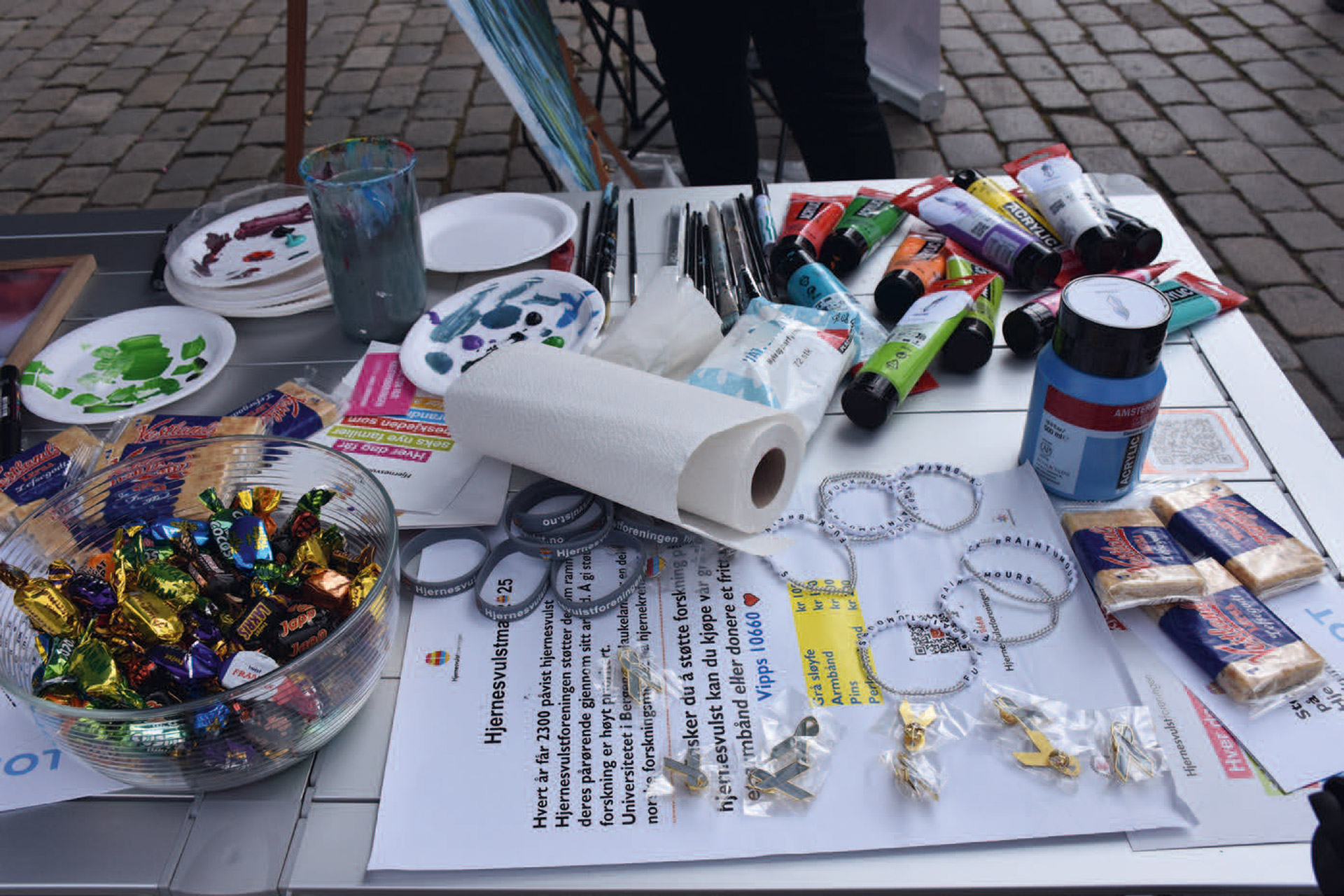Vi håper så mange som mulig vil komme og bidra til dette felles kunstprosjektet. Det koster 100 kroner å delta, og alle som maler får mulighet til å signere baksiden av lerretet.